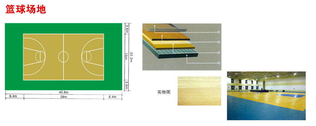 籃球標(biāo)準(zhǔn)比賽場地長28米,寬15米,籃球運動地板長不小于40.8米,寬不小于22.2米,總面積約906平方米。